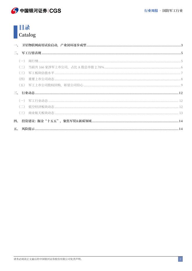 中国银河:军工行业双周报:卫星物联网商用试验启动,产业闭环逐步成型.pdf