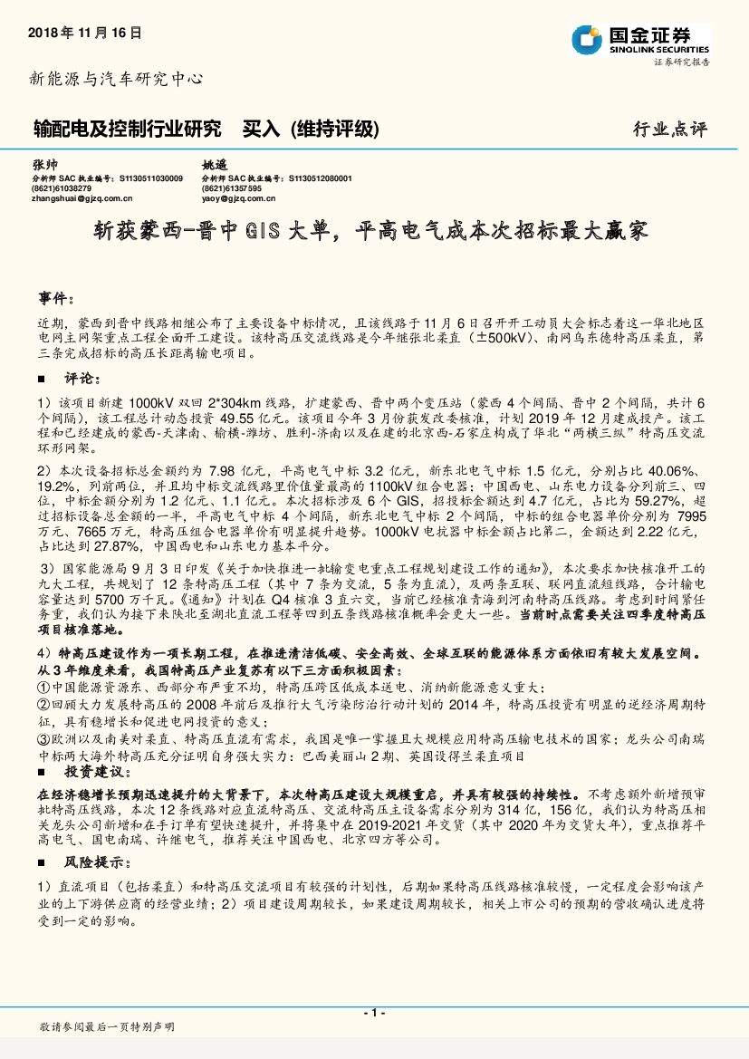 国金证券:输配电及控制行业研究:斩获蒙西-晋中GIS大单,平高电气成本次招标最大赢家.pdf