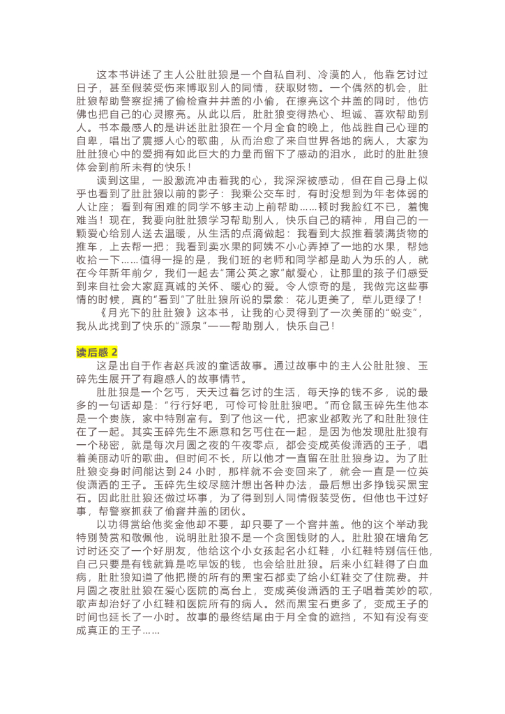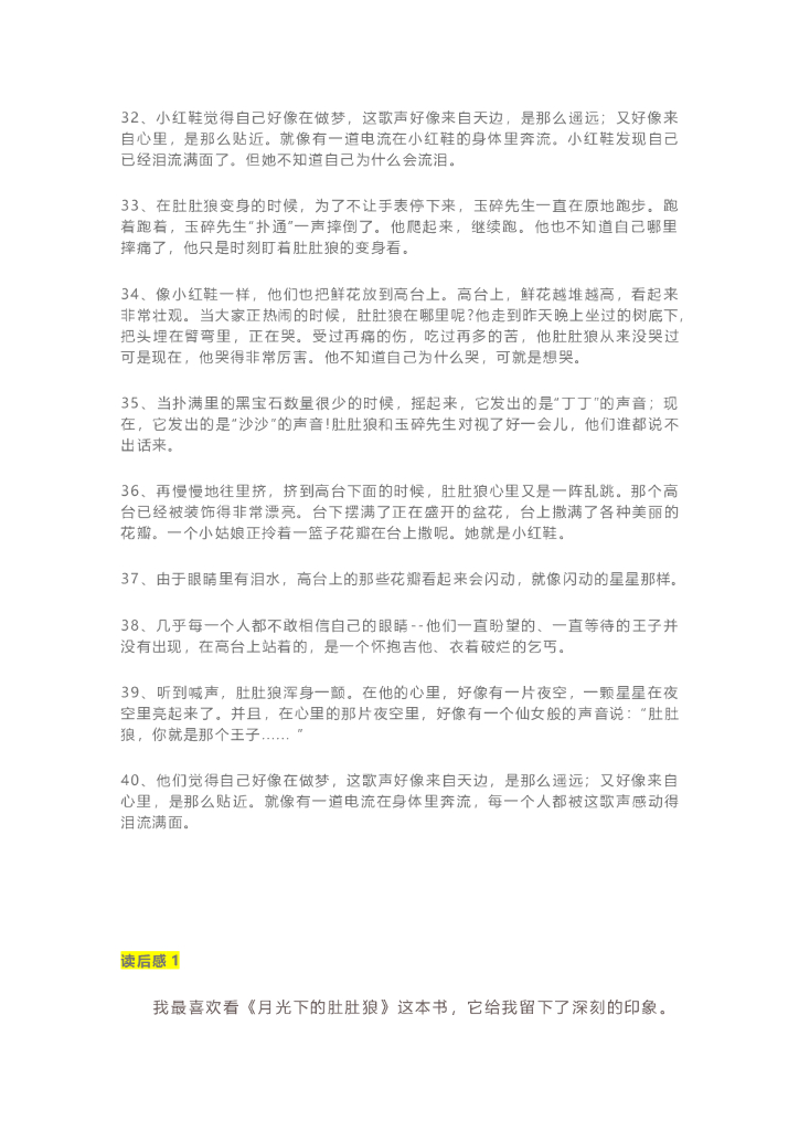 25《月光下的肚肚狼》精彩片段+读后感.doc