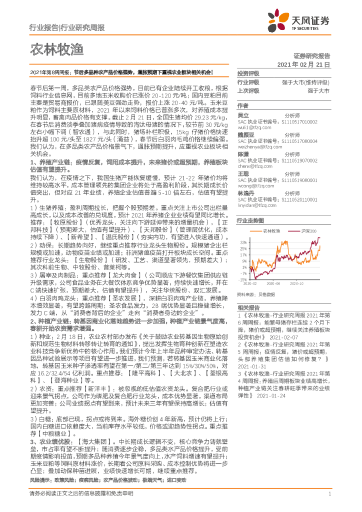 天风证券:农林牧渔行业2021年第8周周报:节后多品种农产品价格强势,通胀预期下重视农业板块相关机会!.pdf