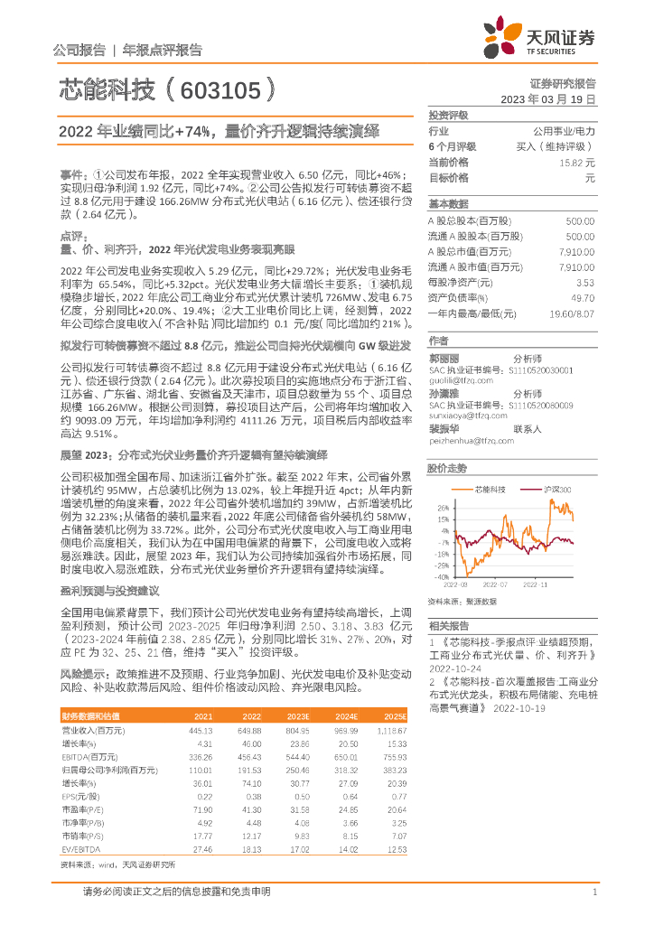 天风证券:芯能科技(603105)-2022年业绩同比+74%,量价齐升逻辑持续演绎.pdf