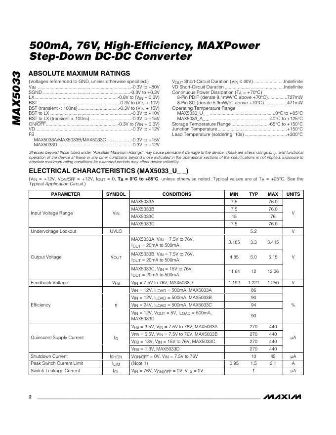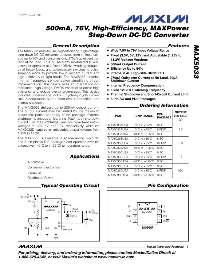 MAXIM INTEGRATED PRODUCTS MAX5033 MAXPower Step-Down DC-DC Converter 数据手册.pdf