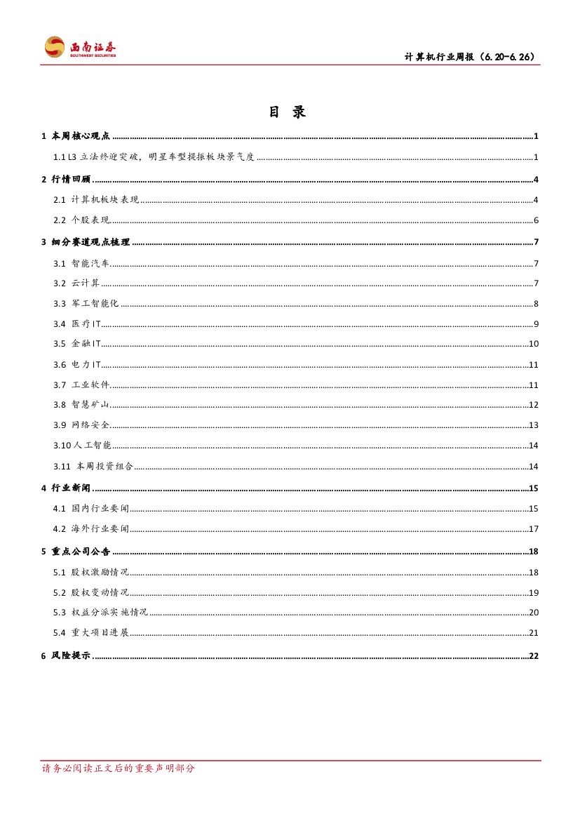 西南证券:计算机行业周报:L3立法首获通过,智能汽车乘风而行.pdf