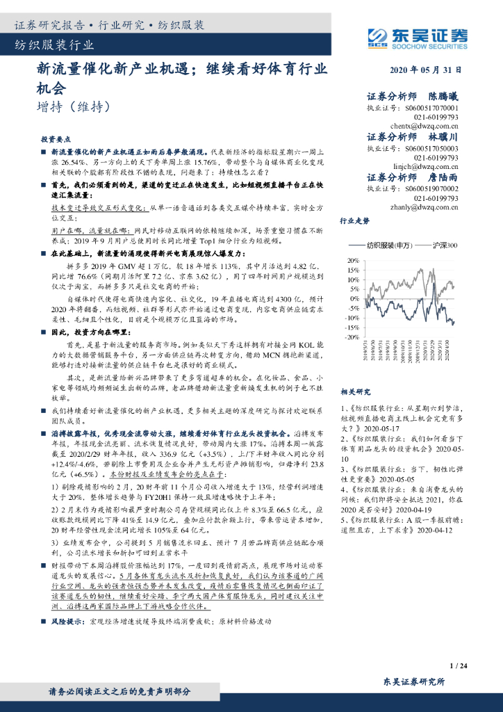 东吴证券:纺织服装行业跟踪周报:新流量催化新产业机遇;继续看好体育行业机会.pdf