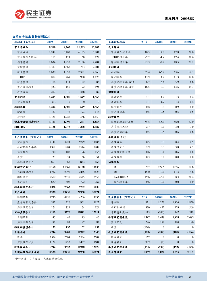 民生证券:用友网络2020H1中报点评:云服务保持高增长,新平台打造新方向.pdf
