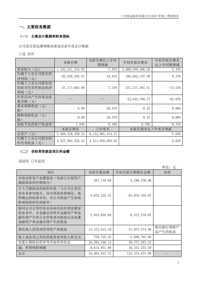 002216-三全食品:2025年三季度报告.pdf