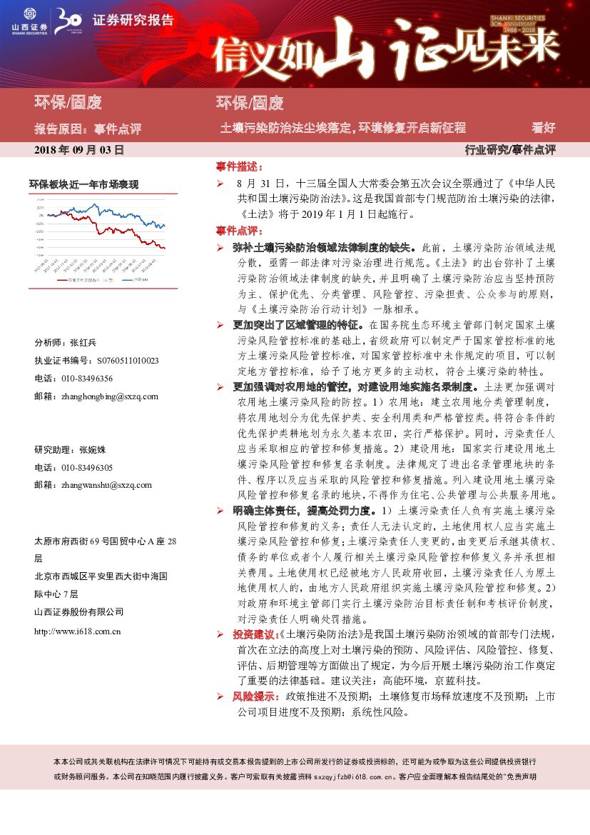 山西证券:环保/固废事件点评:土壤污染防治法尘埃落定,环境修复开启新征程.pdf