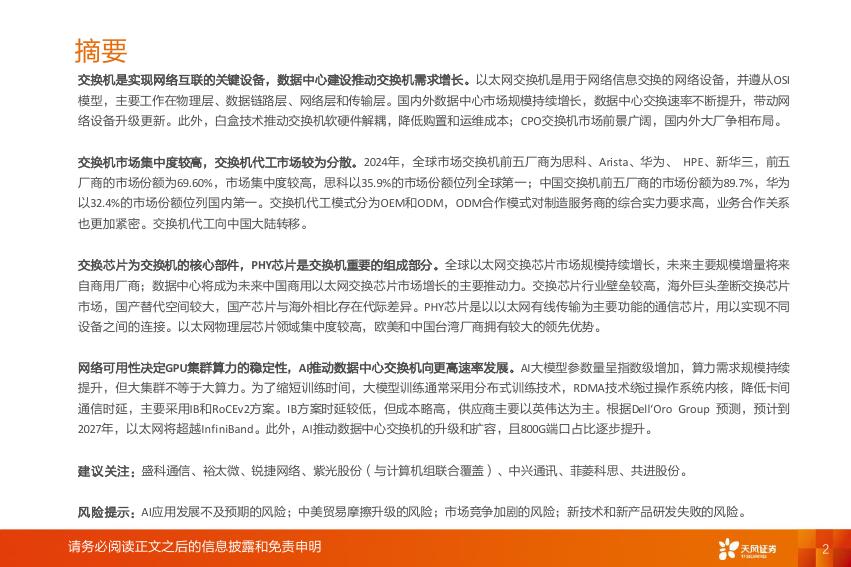 天风证券:AI算力系列之交换机:算力网络稳定“核心”,助力AI高效发展.pdf
