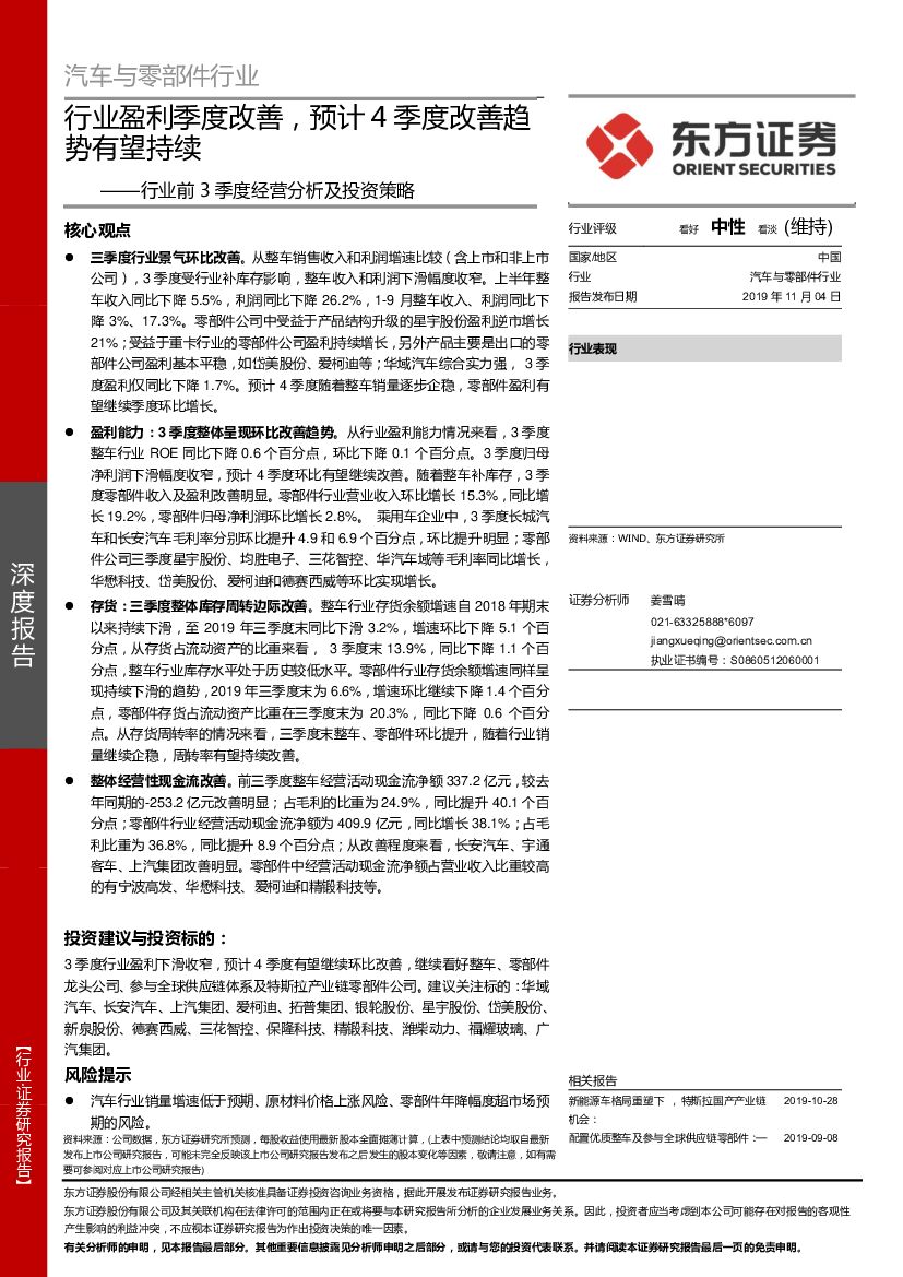东方证券:汽车与零部件行业前3季度经营分析及投资策略:行业盈利季度改善,预计4季度改善趋势有望持续.pdf