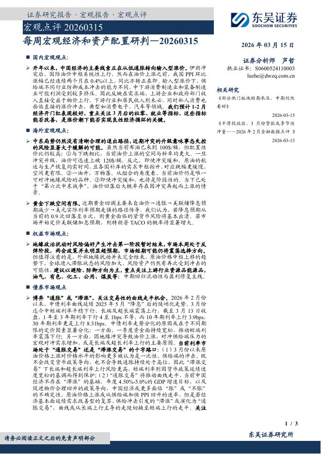 东吴证券:宏观点评:每周宏观经济和资产配置研判-260315.pdf
