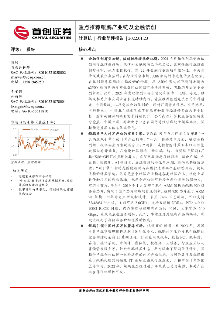 首创证券:计算机行业简评报告:重点推荐鲲鹏产业链及金融信创.pdf