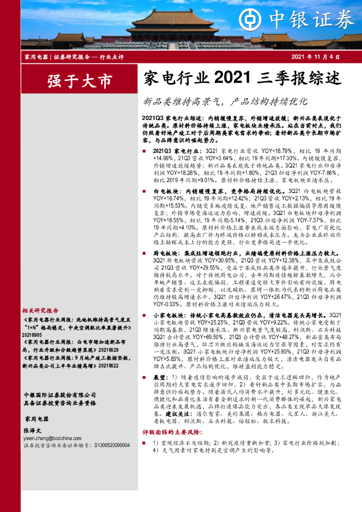 中银证券:家电行业2021三季报综述:新品类维持高景气,产品结构持续优化.pdf