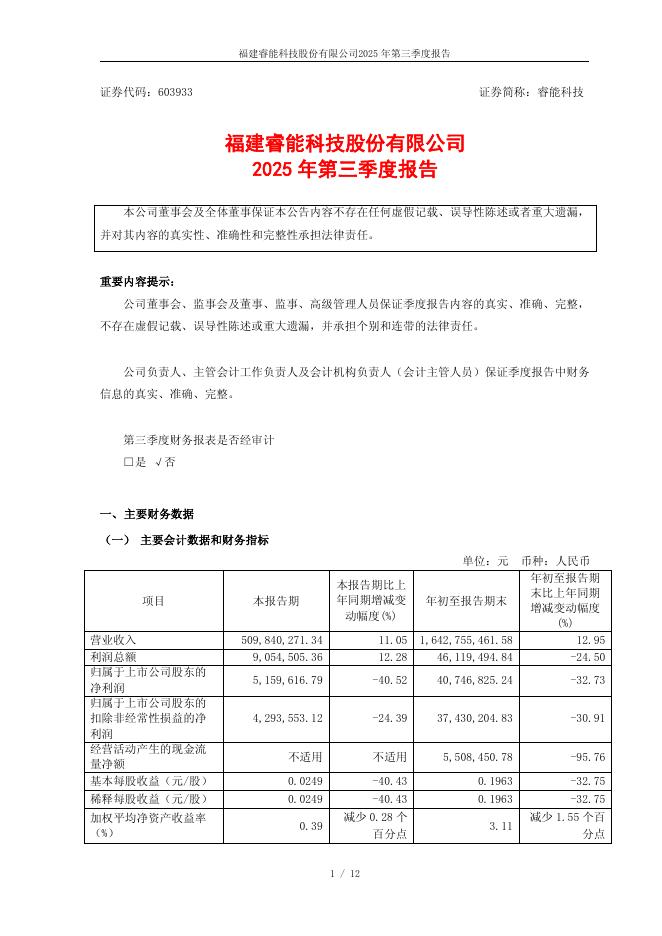 603933-睿能科技:睿能科技2025年第三季度报告.pdf
