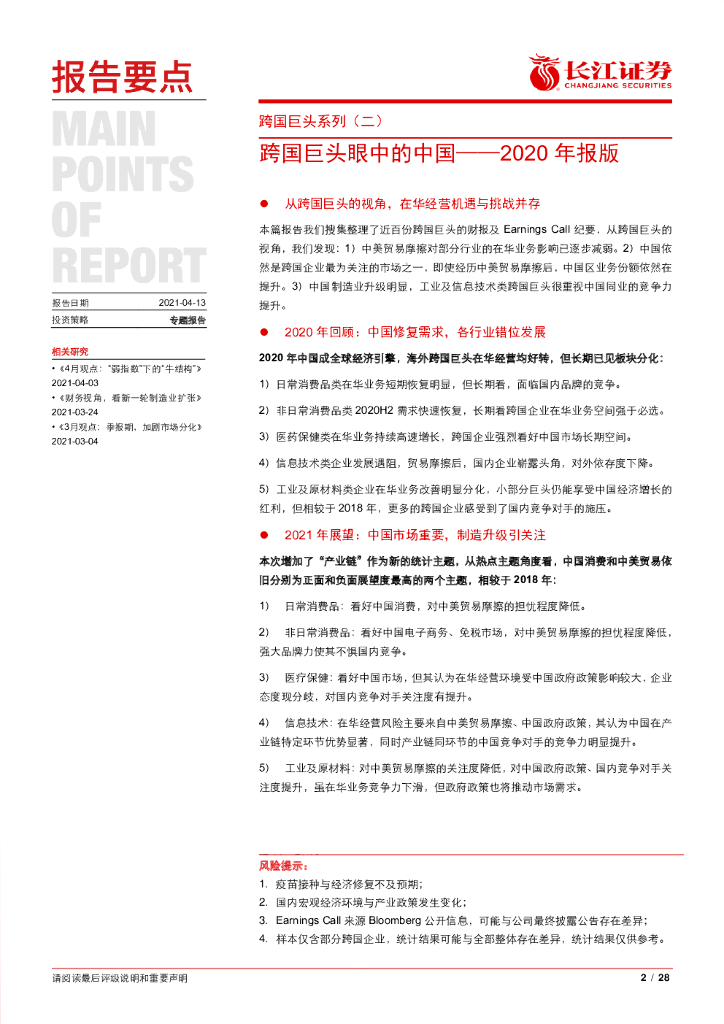 长江证券:跨国巨头系列(二):2020年报版,跨国巨头眼中的中国.pdf