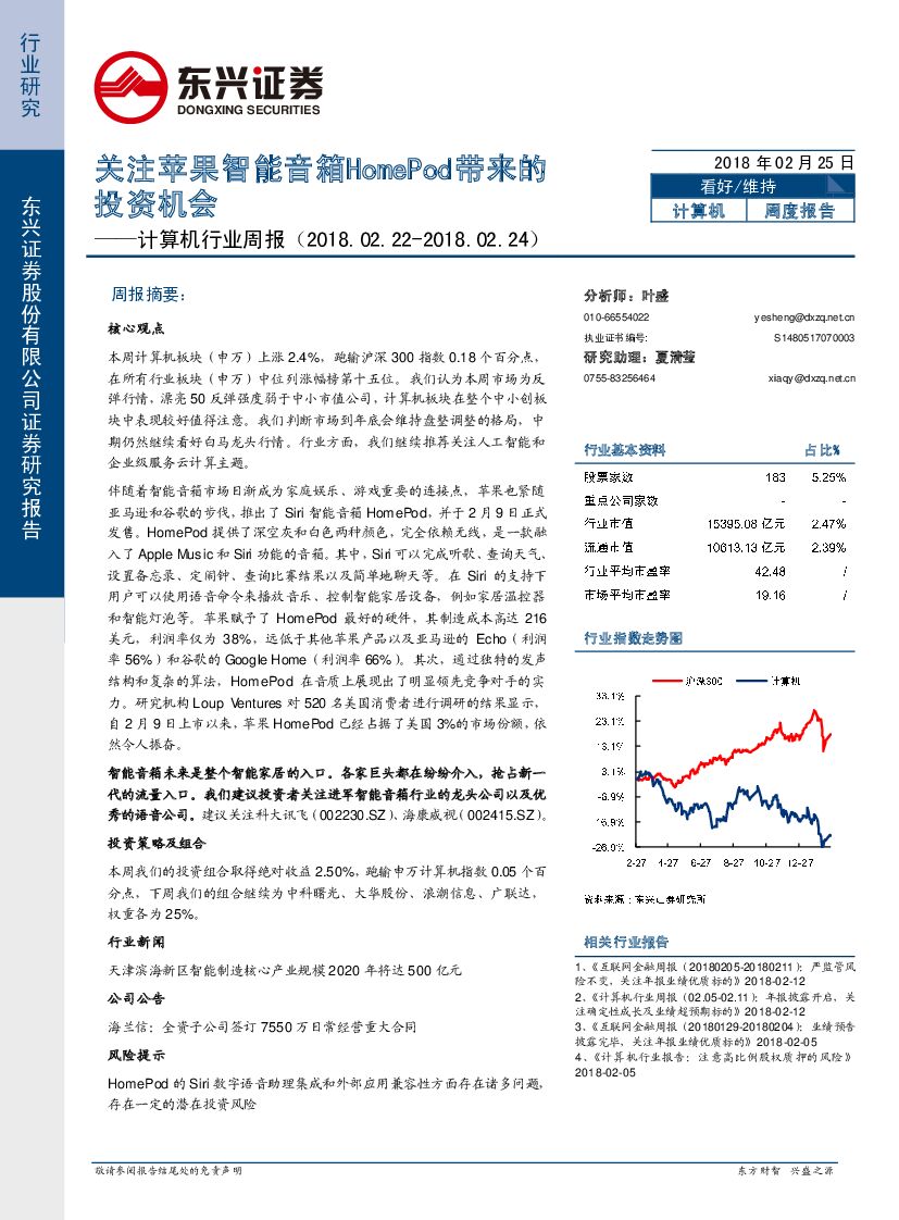 东兴证券:计算机行业周报:关注苹果智能音箱HomePod带来的投资机会.pdf