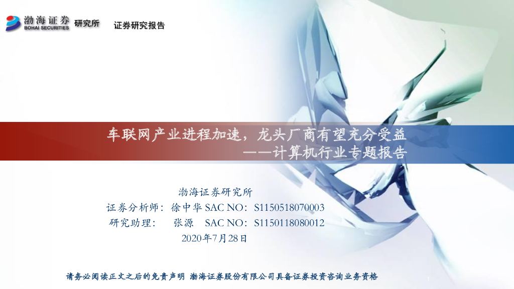 渤海证券:计算机行业专题报告:车联网产业进程加速,龙头厂商有望充分受益.pdf
