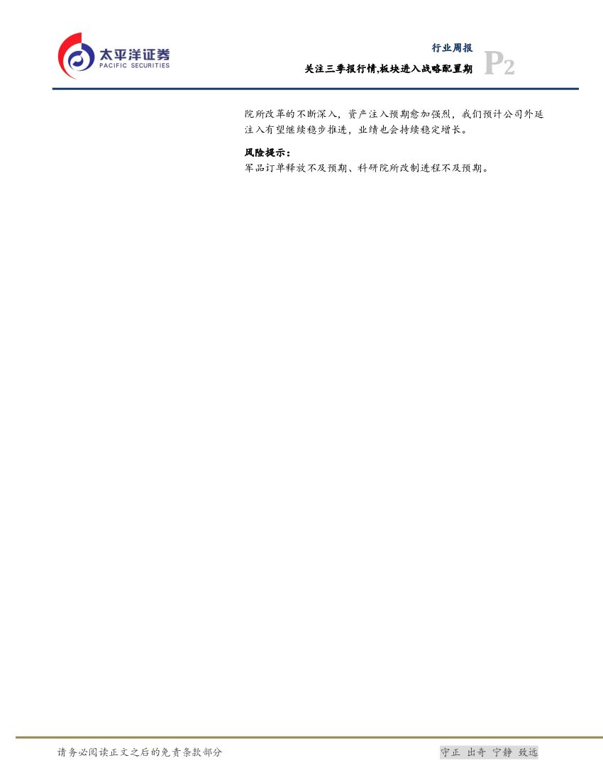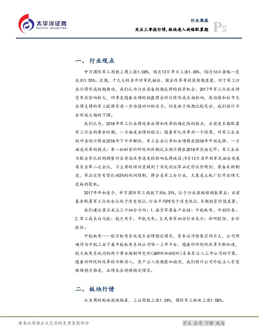 太平洋证券:国防军工行业周报:关注三季报行情,板块进入战略配置期.pdf