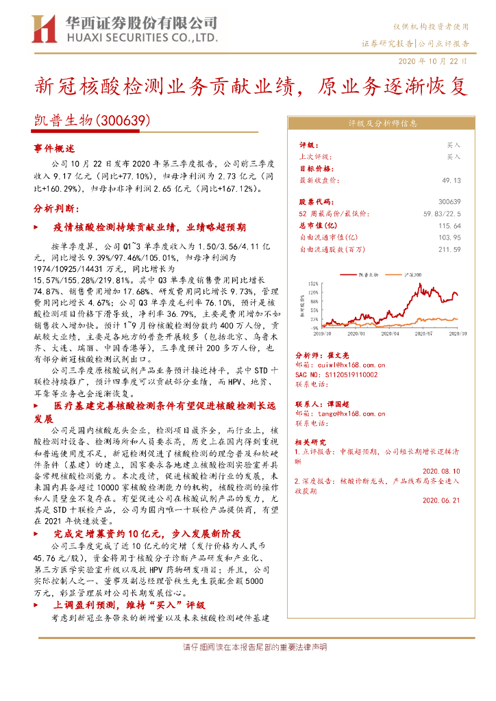 华西证券:凯普生物(300639)-新冠核酸检测业务贡献业绩,原业务逐渐恢复.pdf