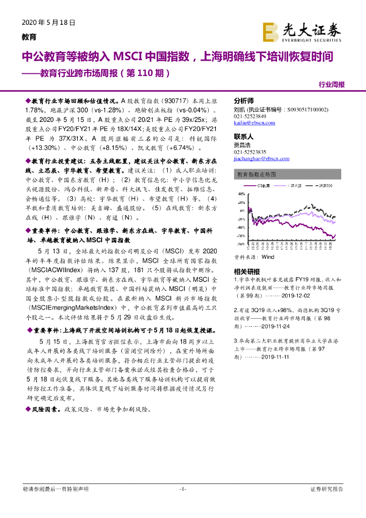 光大证券:教育行业跨市场周报(第110期):中公教育等被纳入MSCI中国指数,上海明确线下培训恢复时间.pdf