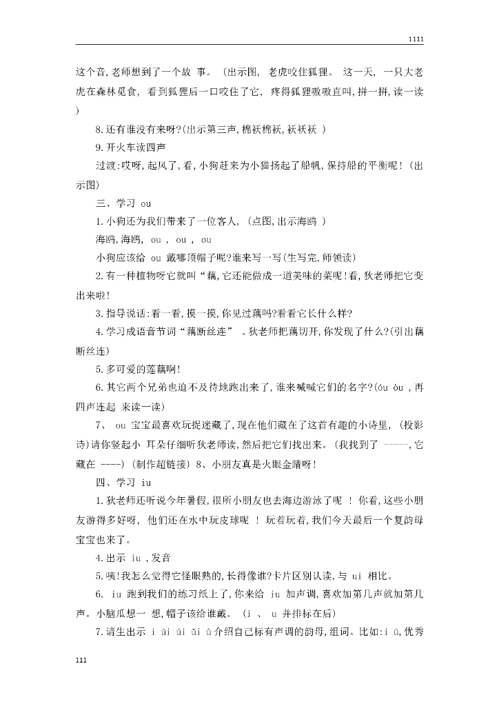 一年级语文(教案3)10 ao ou iu教学设计.doc