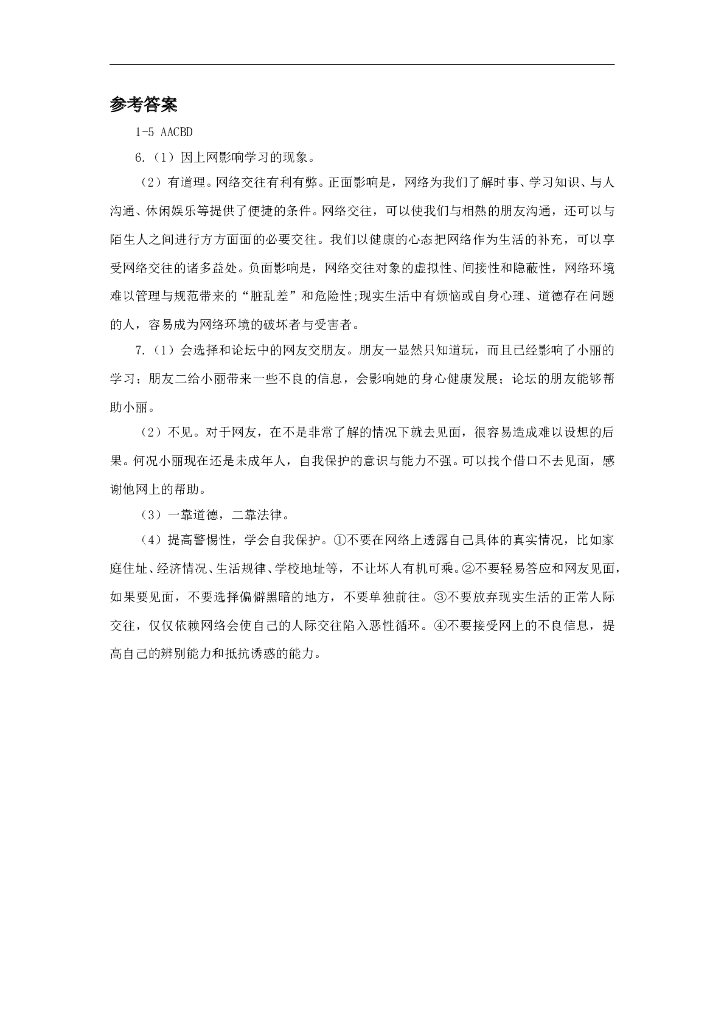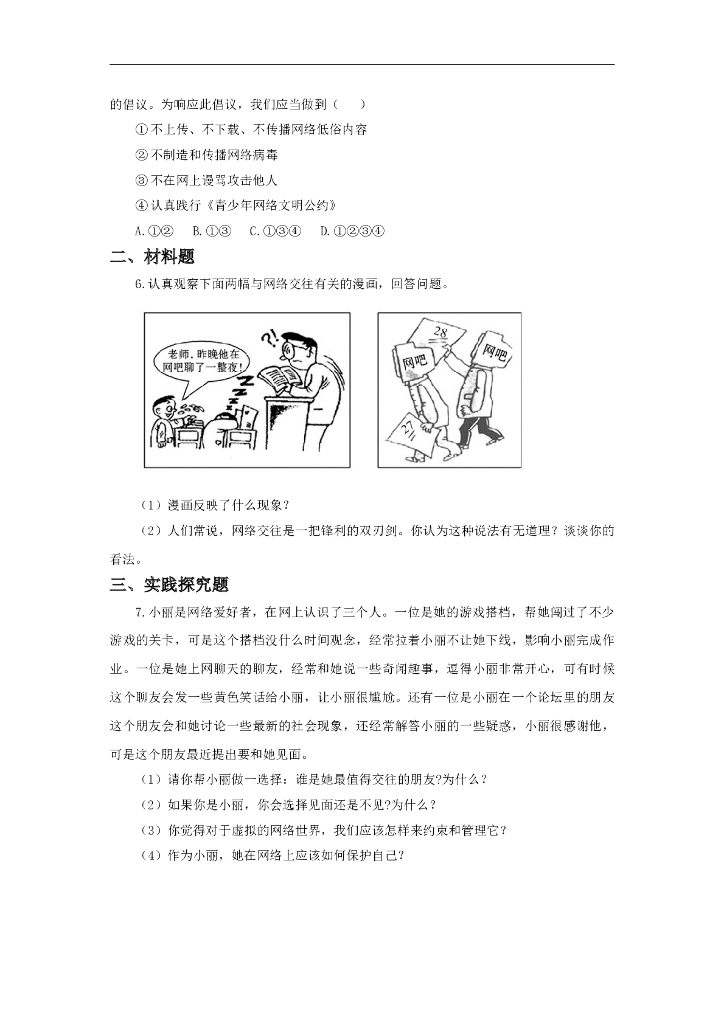 七年级上册 初中道德与法治5.2《网上交友新时空》同步练习.doc