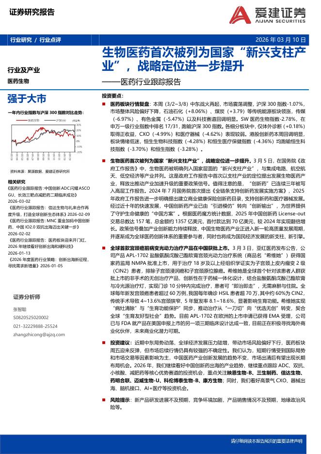 爱建证券:医药行业跟踪报告:生物医药首次被列为国家“新兴支柱产业”,战略定位进一步提升.pdf