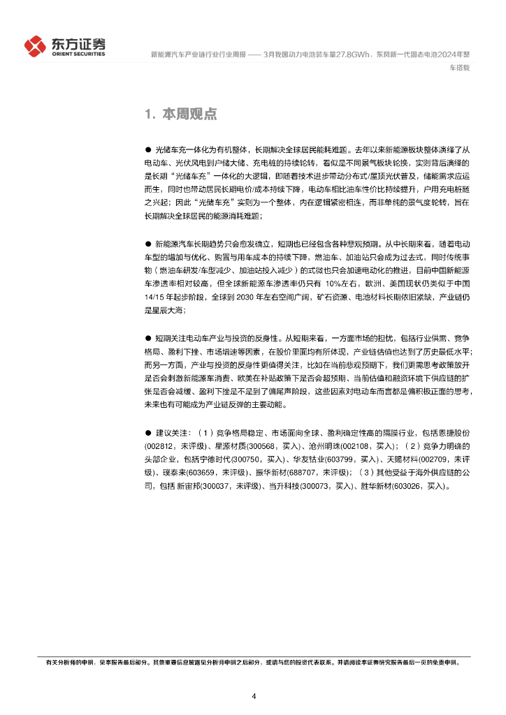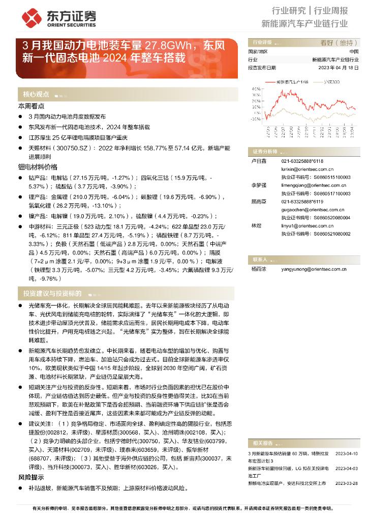 东方证券:新能源汽车产业链行业行业周报:3月我国动力电池装车量27.8GWh,东风新一代固态电池2024年整车搭载.pdf