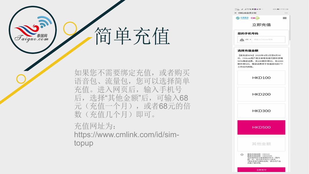 中国移动CMLink充值说明 ——泰国网通讯服务部