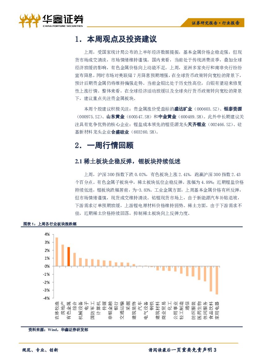 华鑫证券:有色金属行业周报:全球货币政策转向宽松,重点关注贵金属板块.pdf