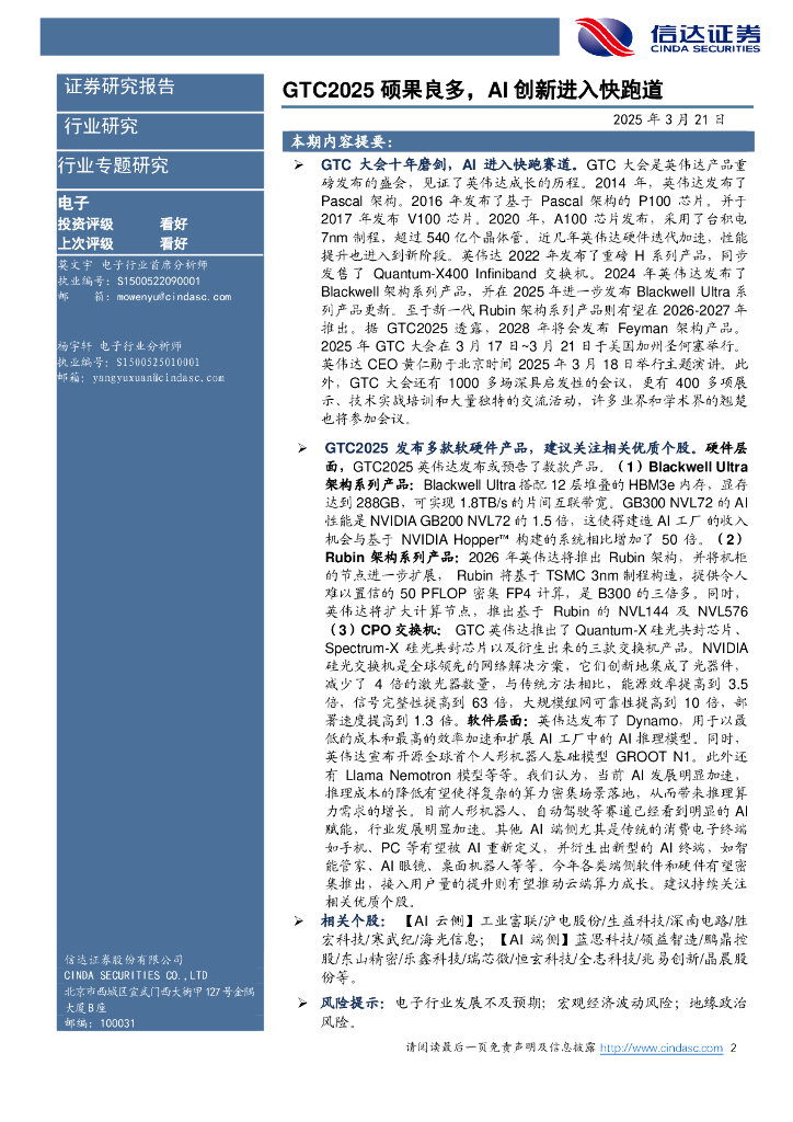 信达证券:电子行业专题研究:GTC2025硕果良多,AI创新进入快跑道.pdf
