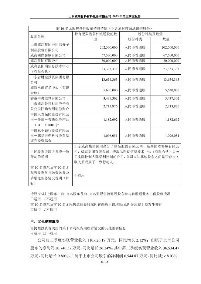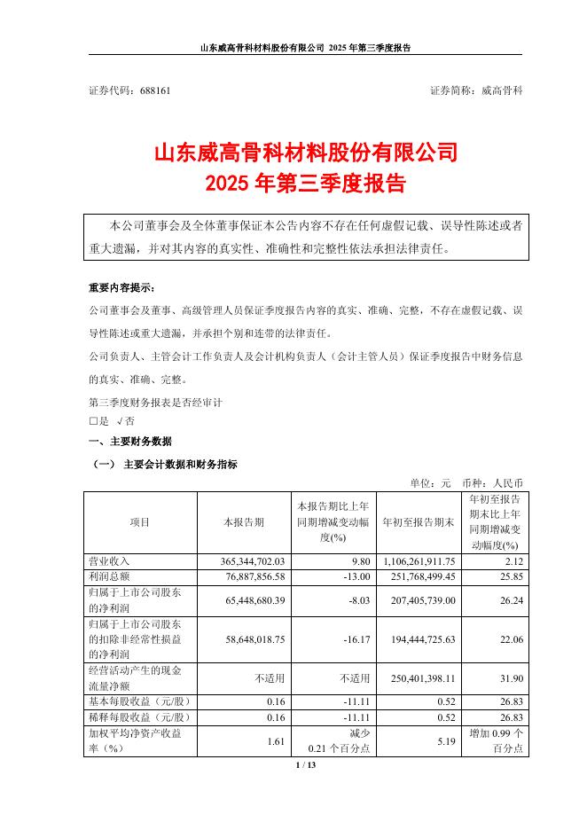 688161-威高骨科:山东威高骨科材料股份有限公司2025年第三季度报告.pdf