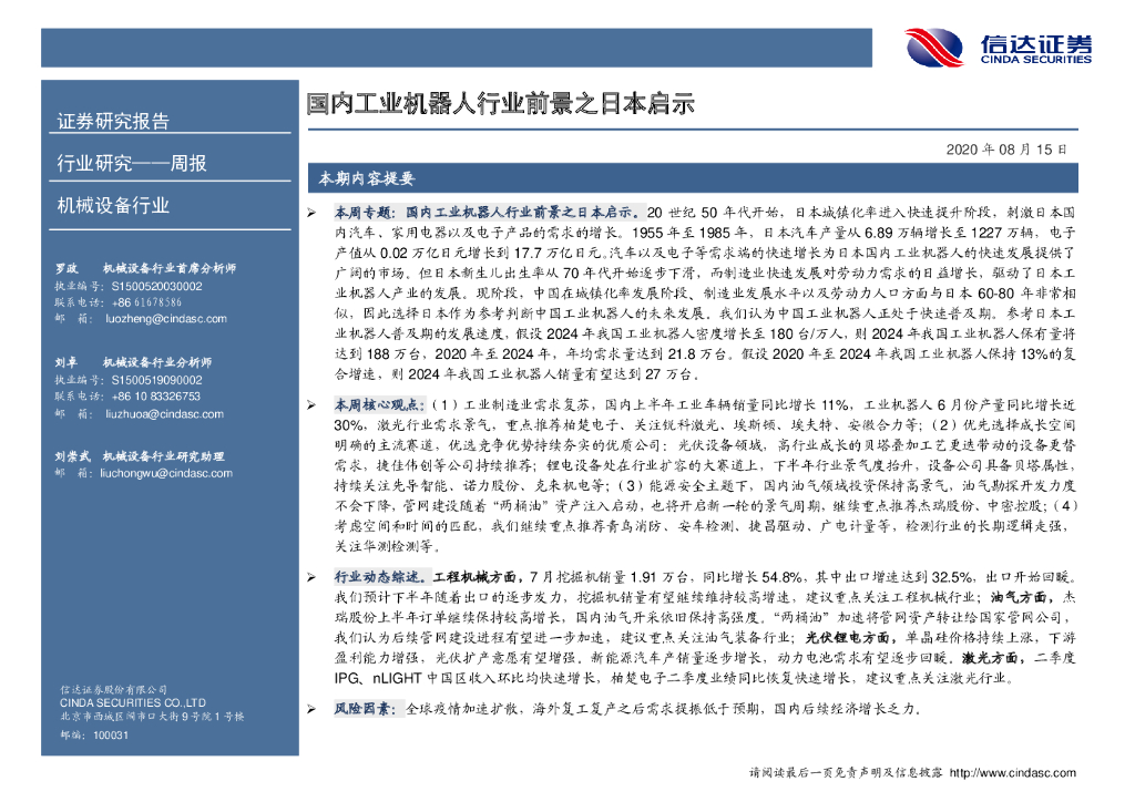 信达证券:机械设备行业周报:国内工业机器人行业前景之日本启示.pdf