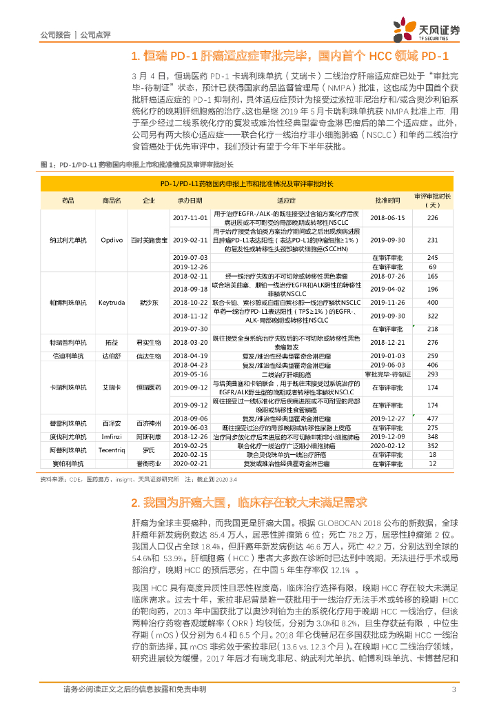 天风证券:恒瑞医药(600276)-恒瑞PD-1肝癌适应症审批完毕,国内首个HCC免疫治疗药物.pdf