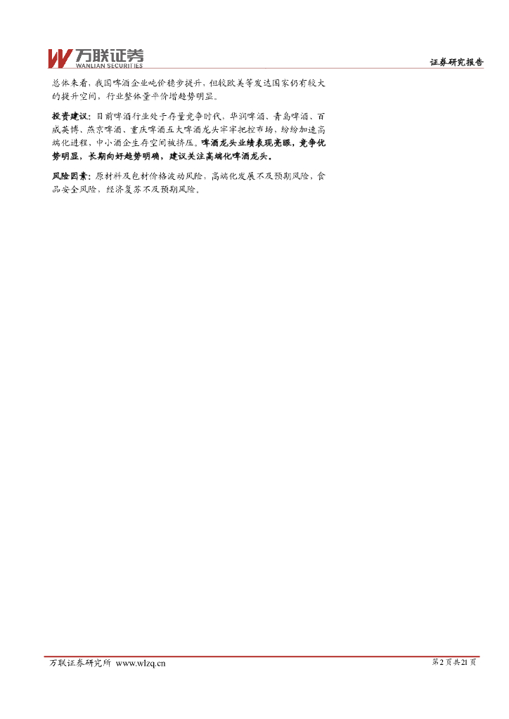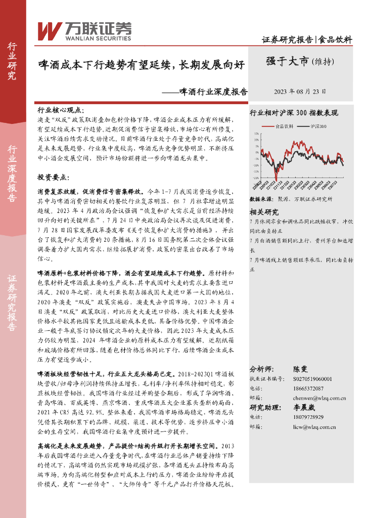 万联证券:啤酒行业深度报告:啤酒成本下行趋势有望延续,长期发展向好.pdf