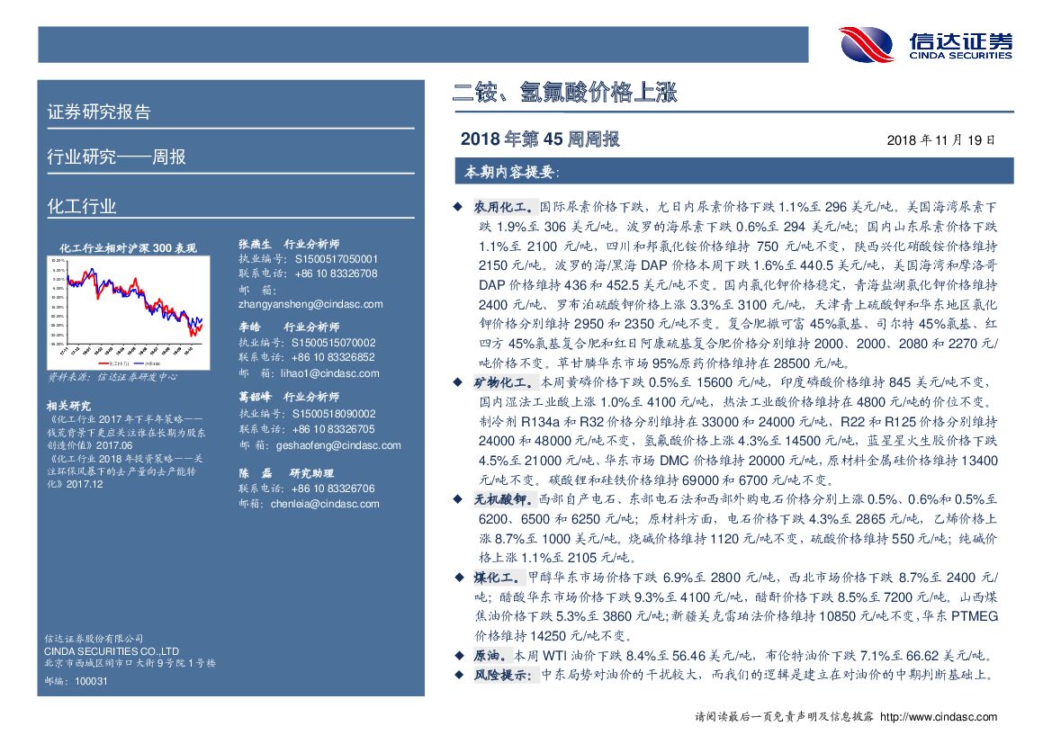 信达证券:化工行业2018年第45周周报:二铵、氢氟酸价格上涨.pdf