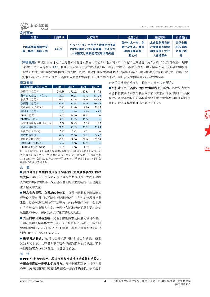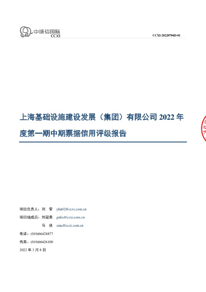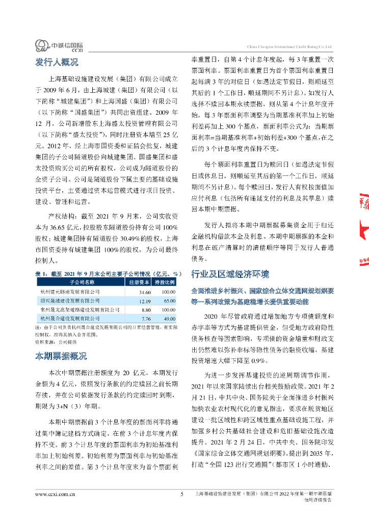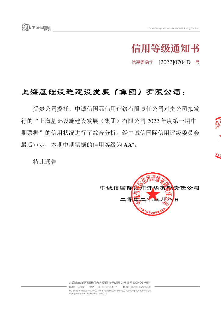 中诚信:上海基础设施建设发展(集团)有限公司2022年度第一期中期票据信用评级报告.pdf