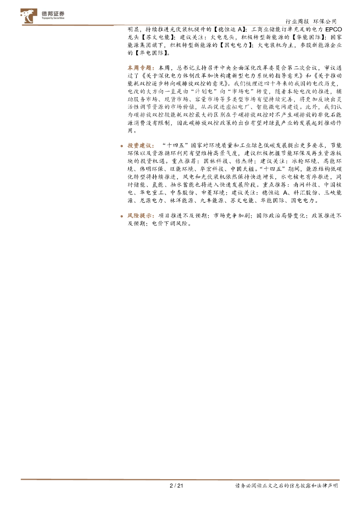 德邦证券:环保与公用事业周报:电改预期升温,碳排放双控有望加速绿氢发展.pdf