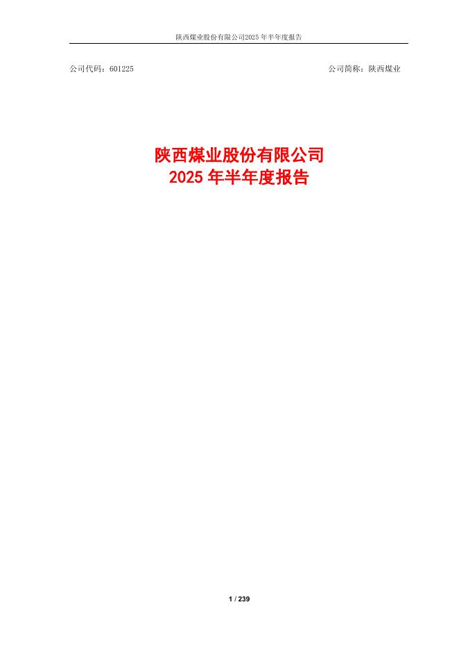 601225-陕西煤业:2025年半年度报告全文.pdf