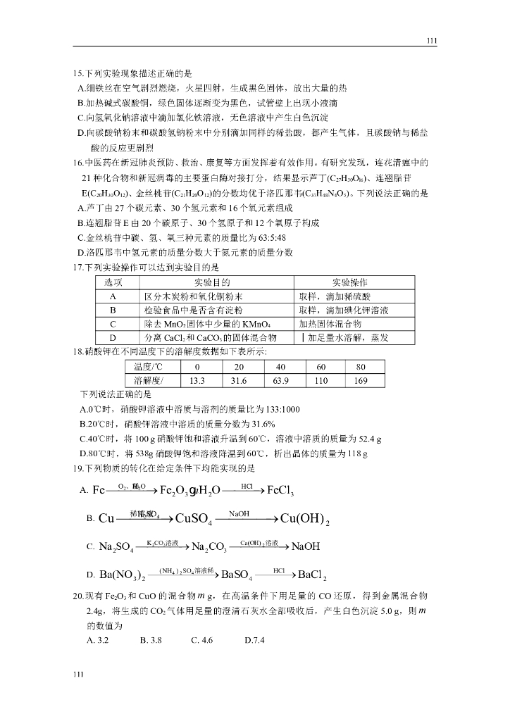 昆山市2020年初三化学调研试卷(含答案)附答案.doc