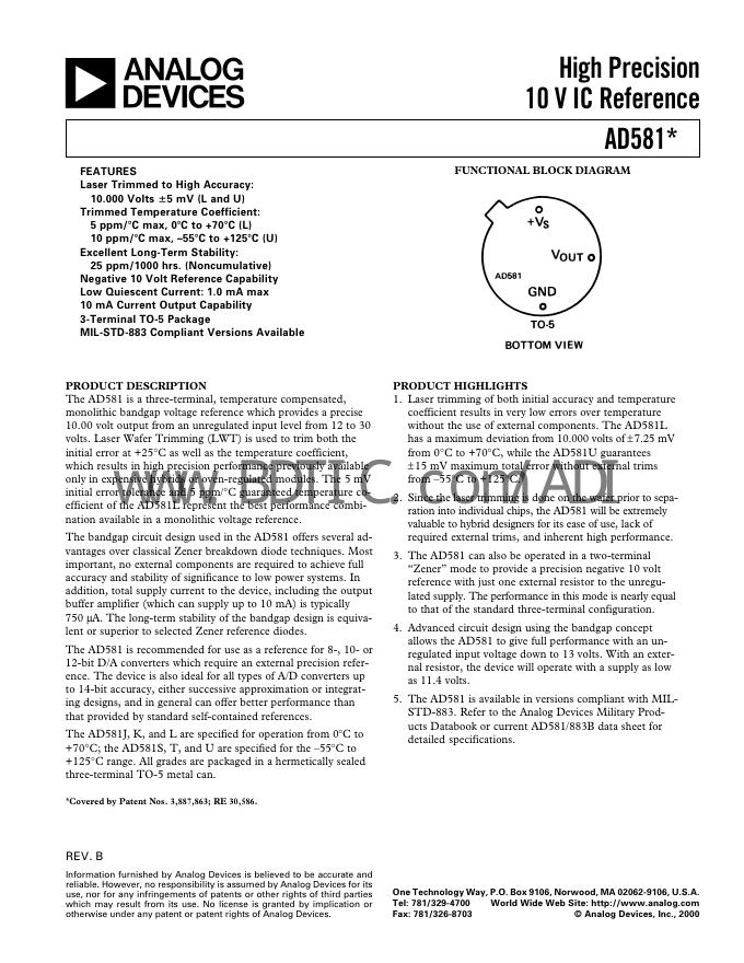 ANALOG DEVICES AD581 数据手册.pdf