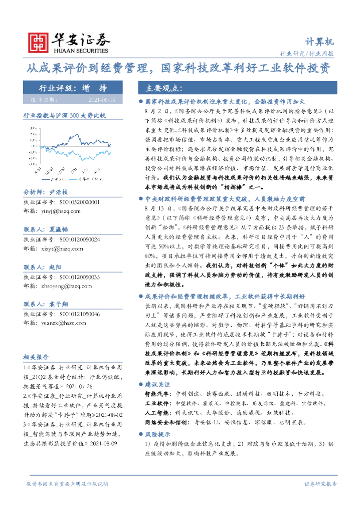 华安证券:计算机行业周报:从成果评价到经费管理,国家科技改革利好工业软件投资.pdf