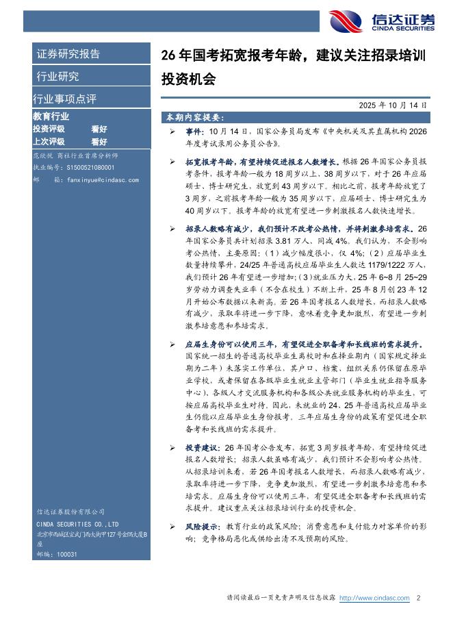信达证券:教育行业行业事项点评:26年国考拓宽报考年龄,建议关注招录培训投资机会.pdf