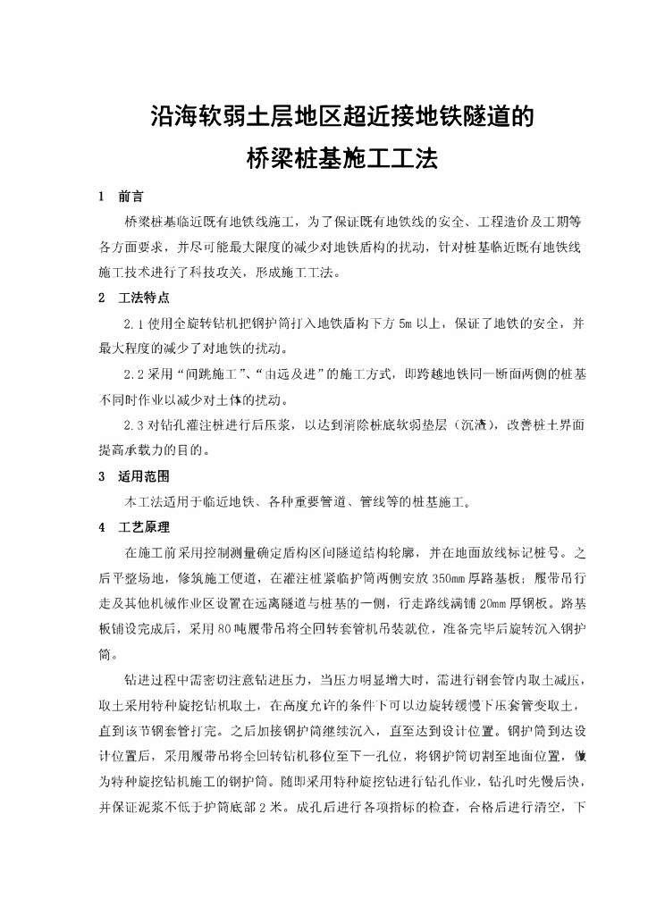 超近接地铁隧道的桥梁桩基施工工法9页.pdf