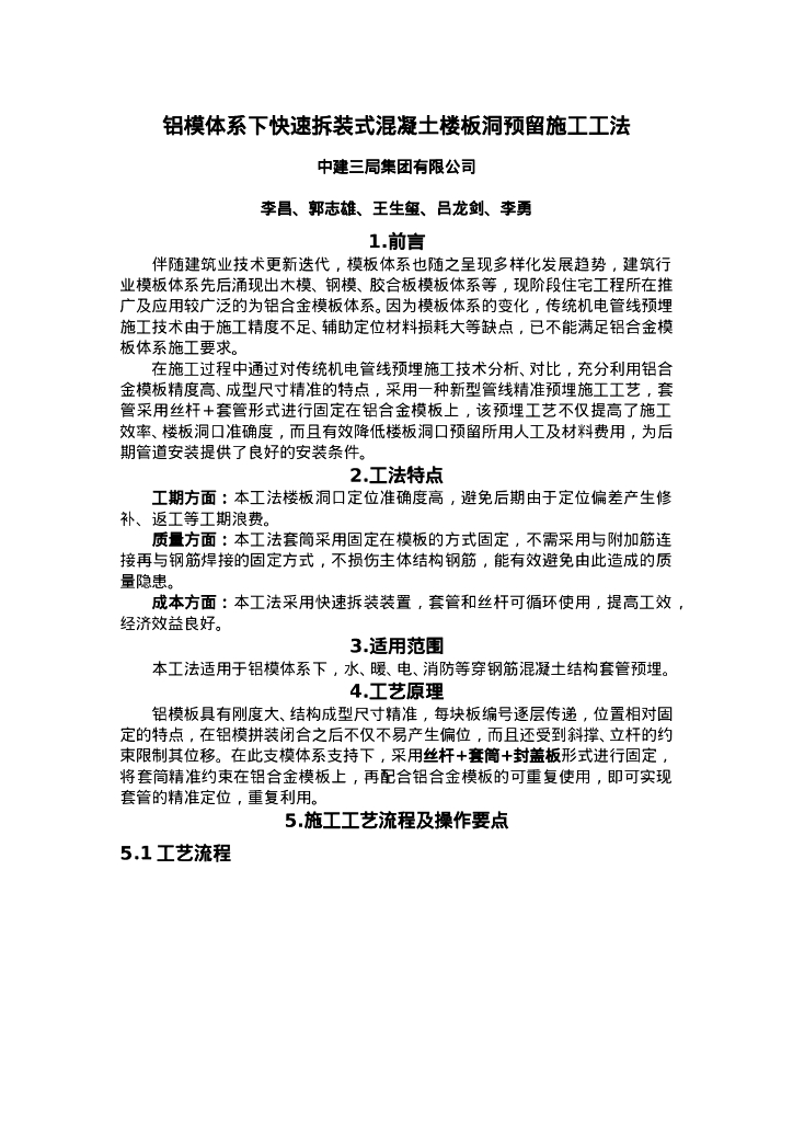 QHGF-2022086 铝模体系下快速拆装式混凝土楼板洞预留施工工法.doc