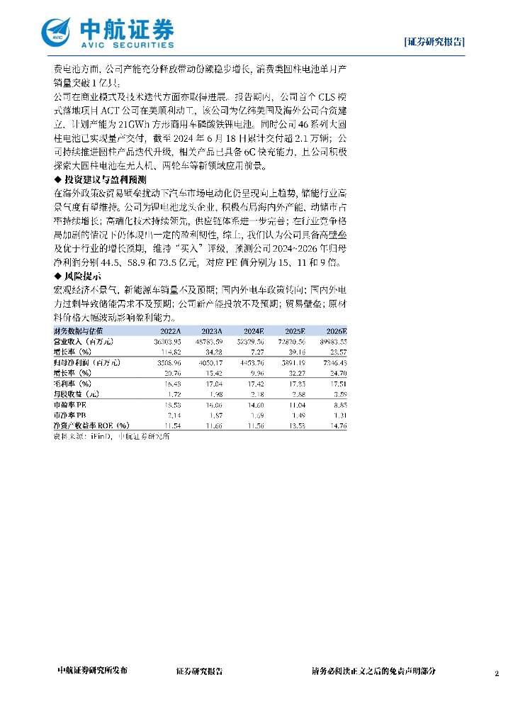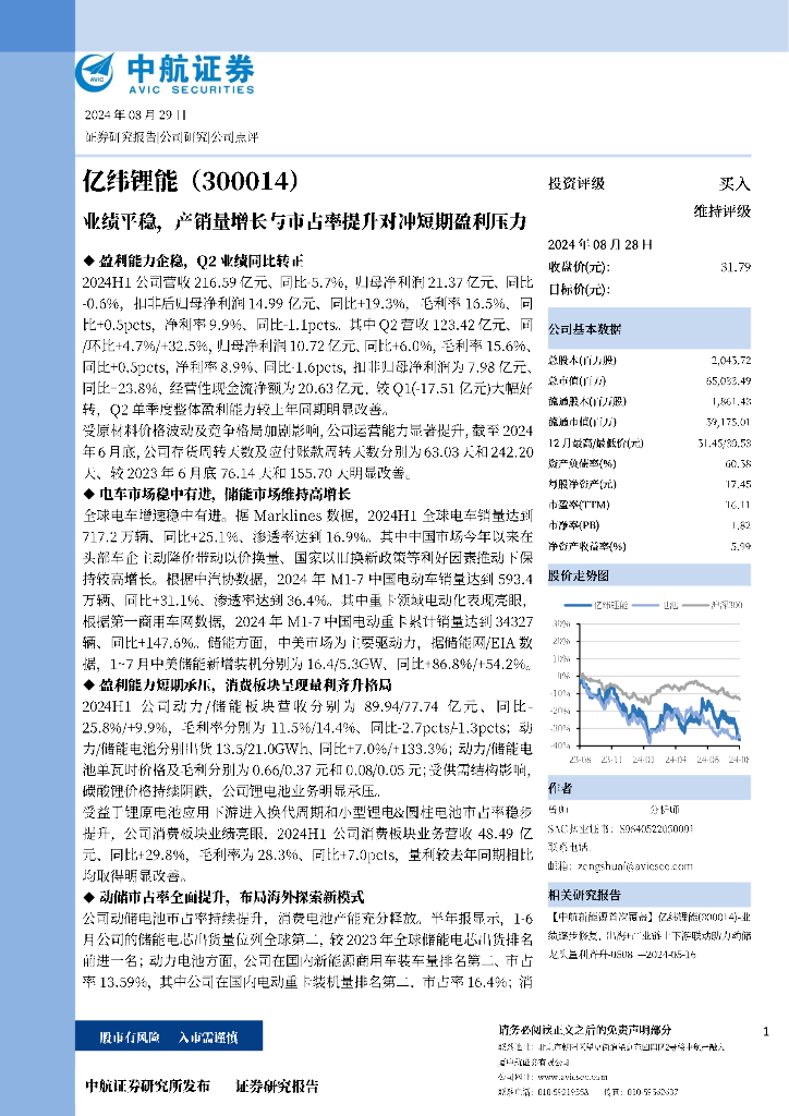 中航证券:亿纬锂能(300014)-业绩平稳,产销量增长与市占率提升对冲短期盈利压力.pdf