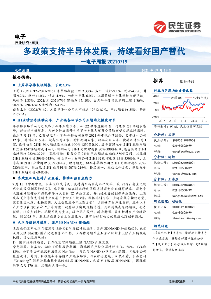 民生证券:电子周报:多政策支持半导体发展,持续看好国产替代.pdf