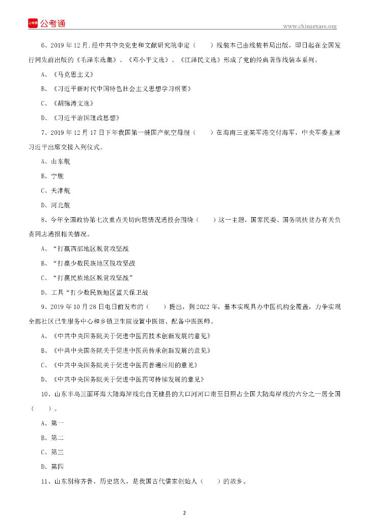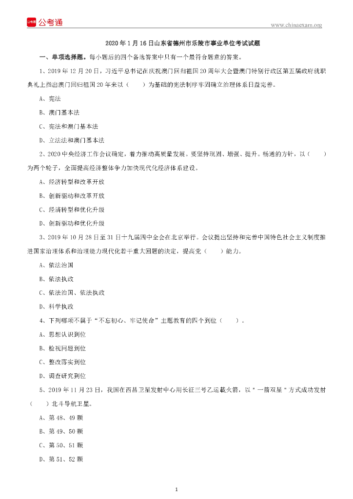 2020年1月16日山东省德州市乐陵市事业单位考试试题.pdf