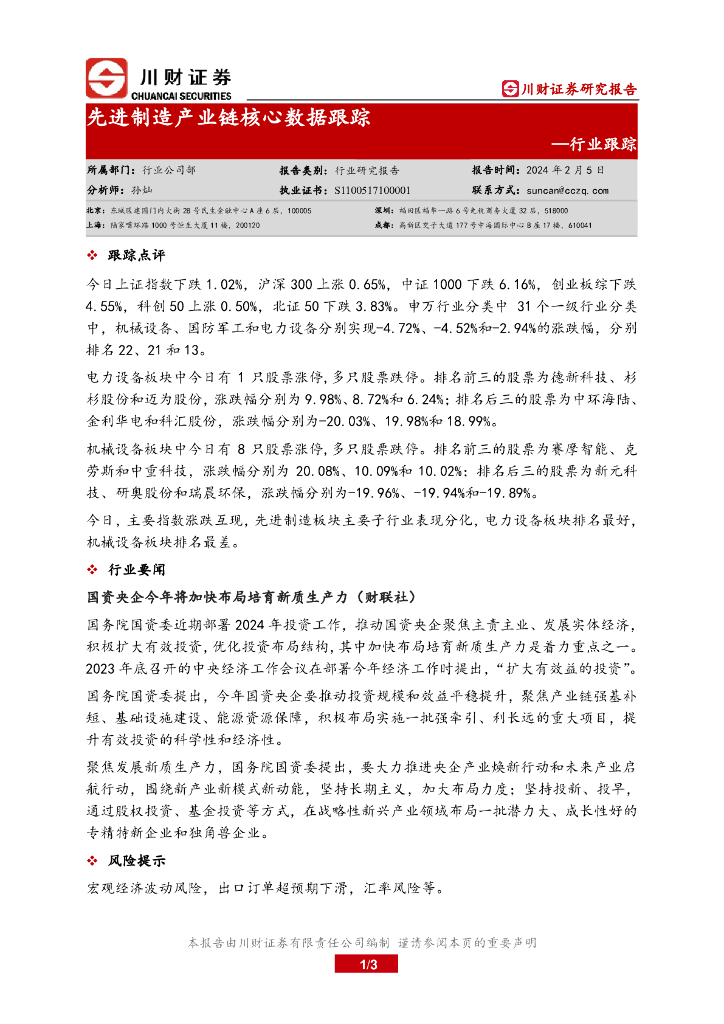 川财证券:行业跟踪:先进制造产业链核心数据跟踪.pdf