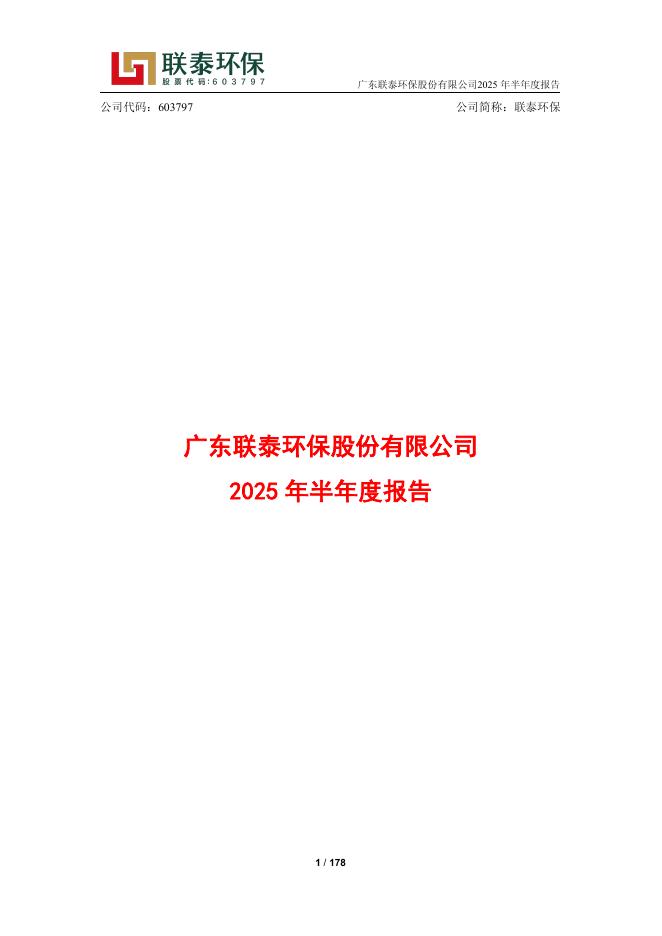 603797-联泰环保:广东联泰环保股份有限公司2025年半年度报告.pdf