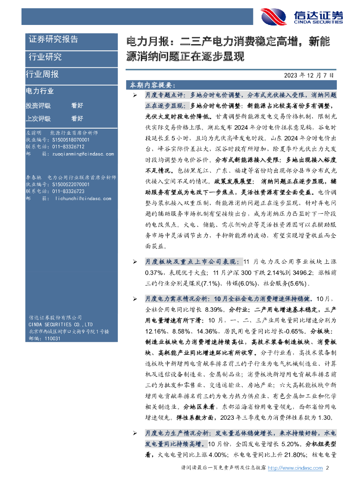 信达证券:电力行业10月月报:二三产电力消费稳定高增,新能源消纳问题正在逐步显现.pdf